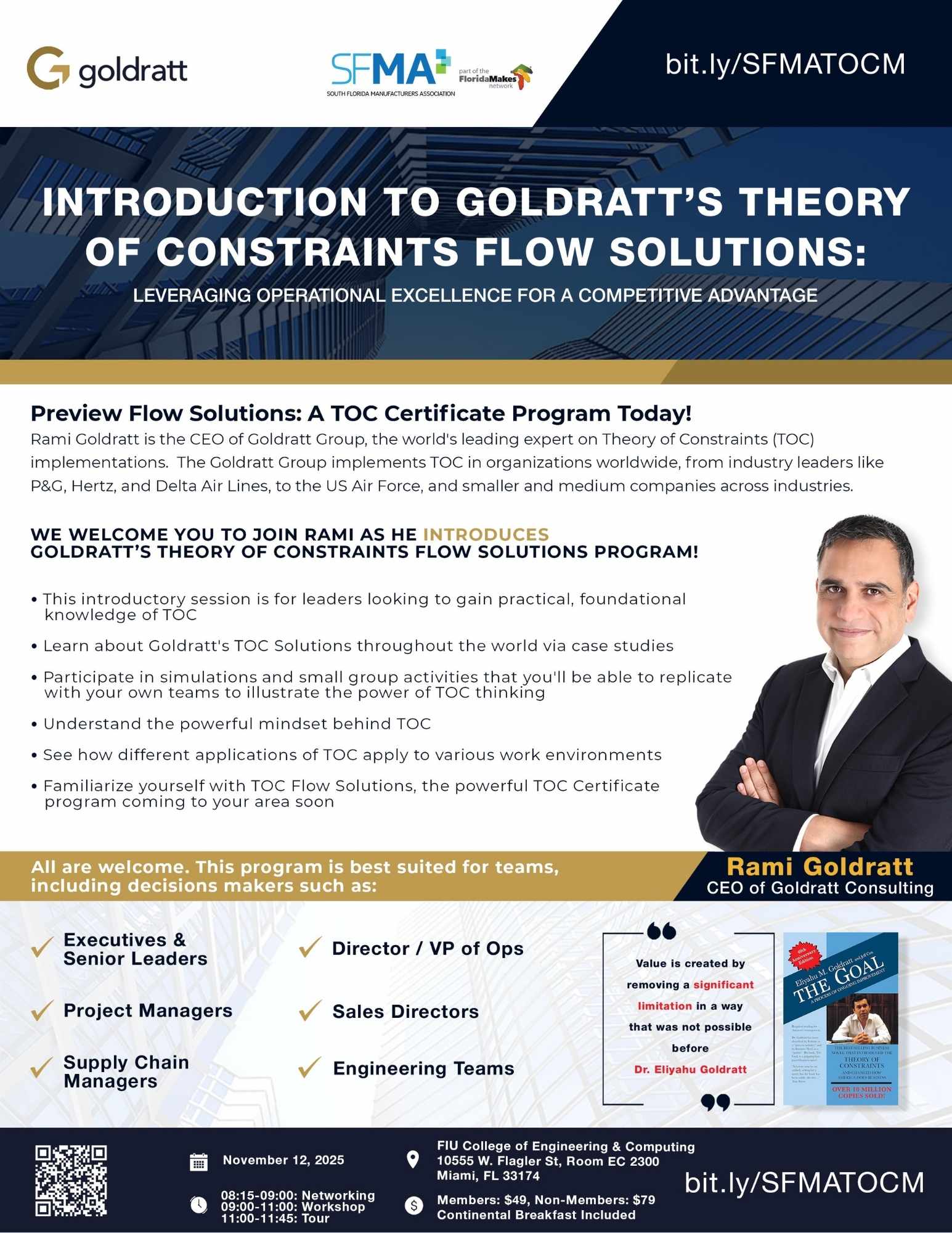 Miami Theory of Constraints Workshop & FIU Cold Spray and Rapid Deposition Lab Tour