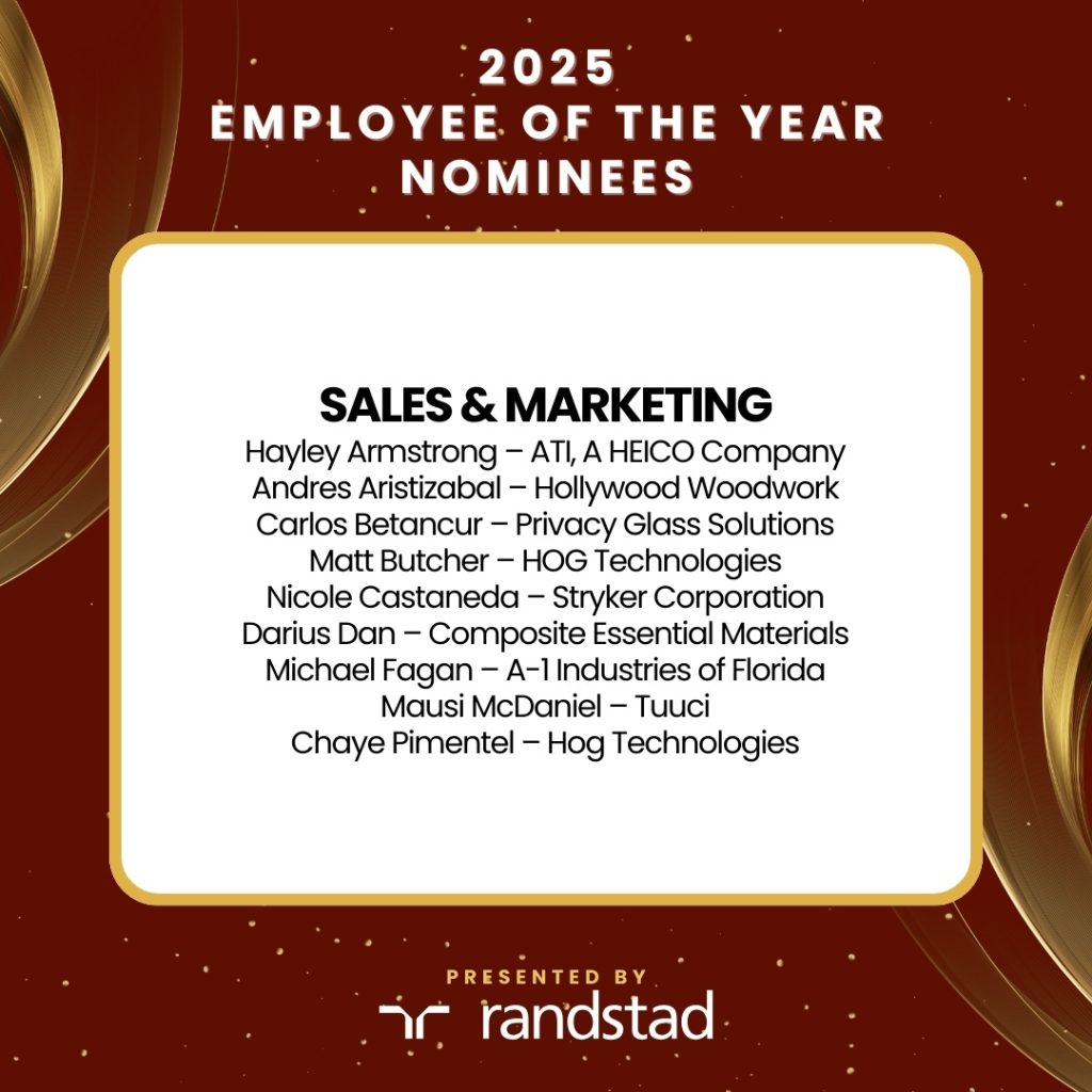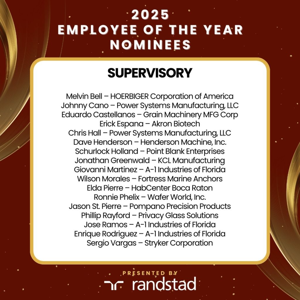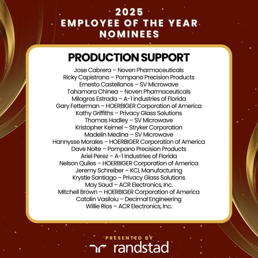 SFMA’s Employee of the Year awards shine a spotlight on brilliance in manufacturing, acknowledging top-tier talent in South Florida’s challenging job market. Celebrate nominees who go above and beyond in six categories, recognizing extraordinary contributions in Administrative (e.g., Finance, Human Resources, etc..), Engineering, Environmental Health & Safety, Information Technology, Production, Production Support, Sales & Marketing, and Supervisory roles. This isn’t just a ceremony; it’s a grand acknowledgment of excellence that transcends ordinary recognition. We have even carved out a special category for our non-manufacturing members.